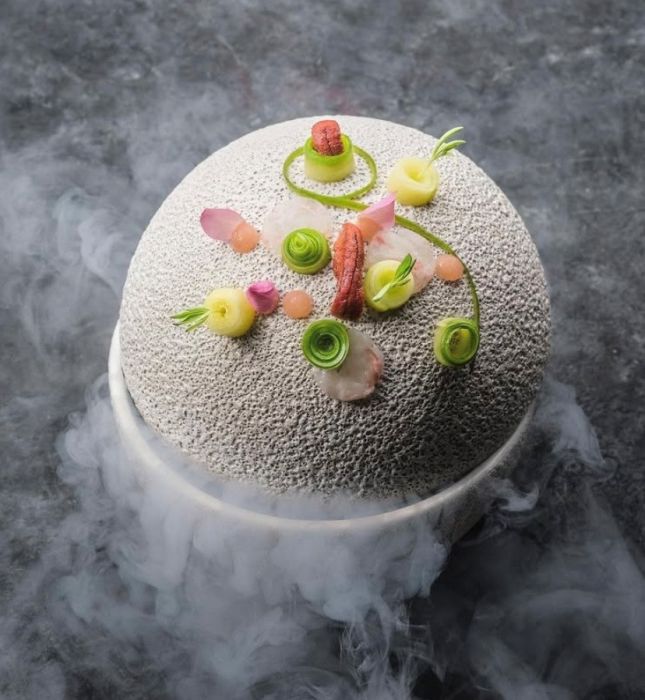 Bol bola volcanica con tapa. Plat en forma de esfera para servir platos, arroces, aperitivos, postres, ectt. Incluye tapa que protege el contenido durante la preparación y el servicio.