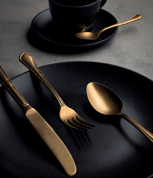 La cubertería Florencia Vintage Gold, transforma cualquier comida enamorando tanto a los clientes de hostelería como a los amantes del diseño vintage.