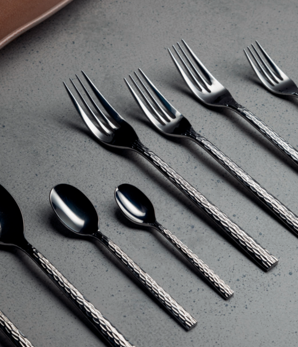 Los cubiertos Olive muestran un diseño ergonómico y un mango con un grabado en patrón trenzado aportando personalidad y sofisticación. Esta cubertería no solo garantiza comodidad al momento de usarla, sino que también destaca sobre cualquier tipo de vajilla, ya sea de estilo clásica o contemporánea, convirtiéndola en una elección perfecta para quienes buscan que su mesa destaque en carácter y modernidad.