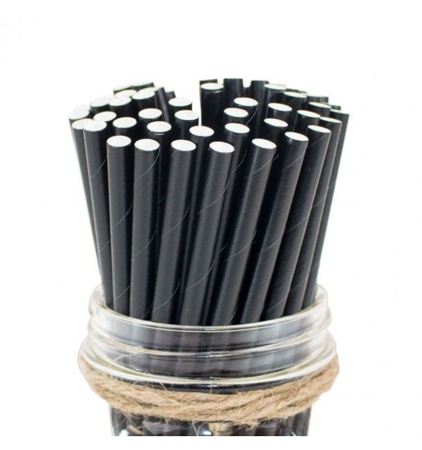 Pajita de papel en color negro. Cañas de papel en color negro.
