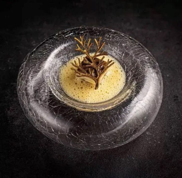 Donut craquelado una obra maestra que fusiona la elegancia con la innovación., este plato craquelado presenta un diseño visualmente impactante